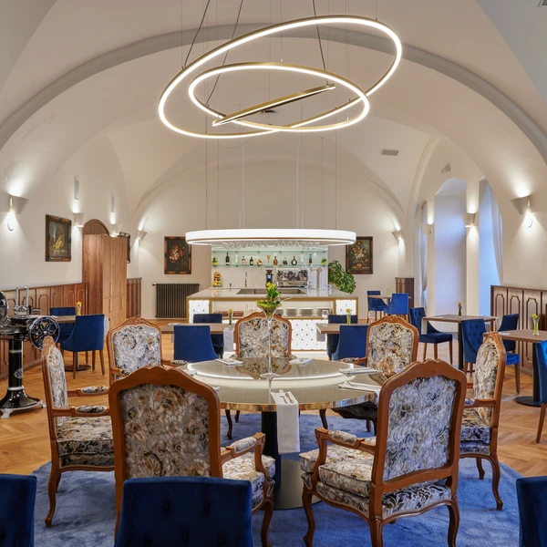 Regentský sál, Orangerie s terasou, Anglický klub, Erb restaurant a nádvoří hotelu.